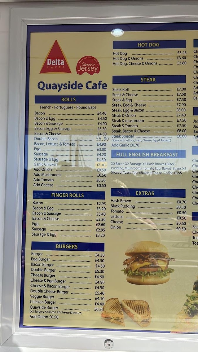 Whether dining in or grabbing a takeaway, Quayside Cafe promises a satisfying culinary experience. It's truly one of Jersey’s little treasures, where quality meets affordability amidst the stunning backdrop of the marina.